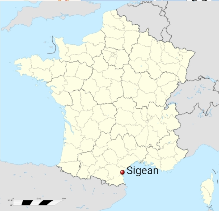 Huset ligger i Sigean, som er en mindre by med ca. 5000 indbyggere, beliggende ca. 60 km fra den spanske grænse og mellem de to større byer Narabonne (20 km) og Perpignan (40 km) og lige op ad motorvej A9.